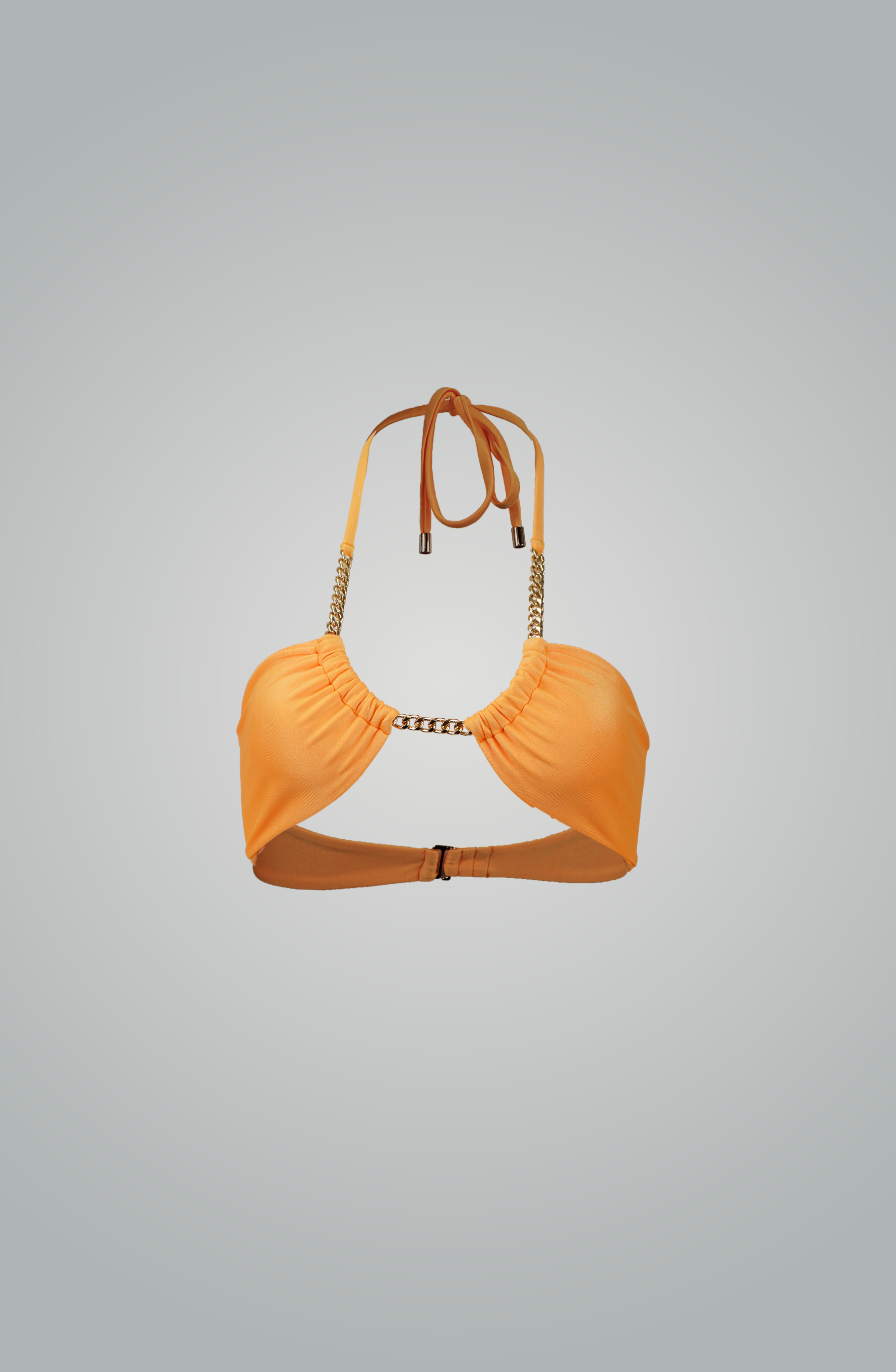 Experience a sophisticated aesthetic with this Goldfish Bikini Too top. Adorned with a gold chain strap, this unique design adds a touch of elegance to your look. Plus, the back features a 3-way regulating system for a perfect fit.